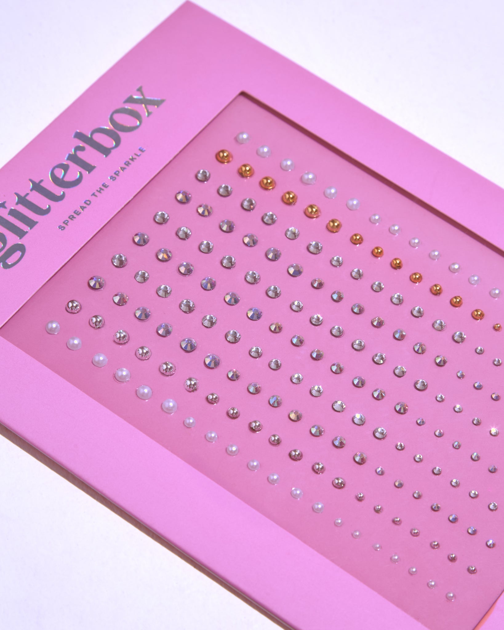 For the daydreamers, ravers and star gazers. Elevate your makeup look with our Starstruck gems. A combination of 200 self-adhesive iridescent gems, pearls and silver and gold studs - the looks are endless.